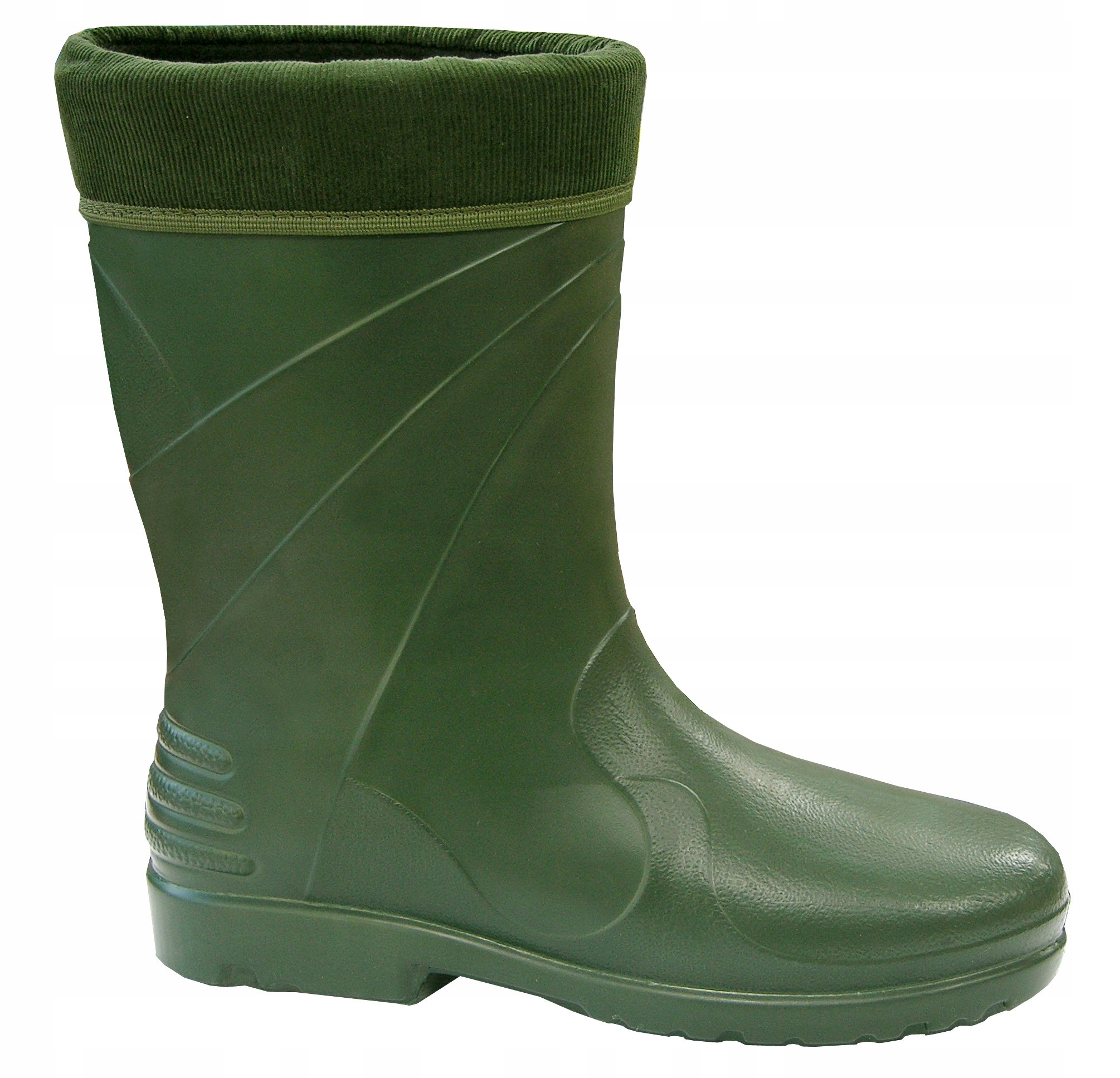 - Kalosz posiada wyjmowany ocieplacz z wywijanym sztruksowym kołnierzem.