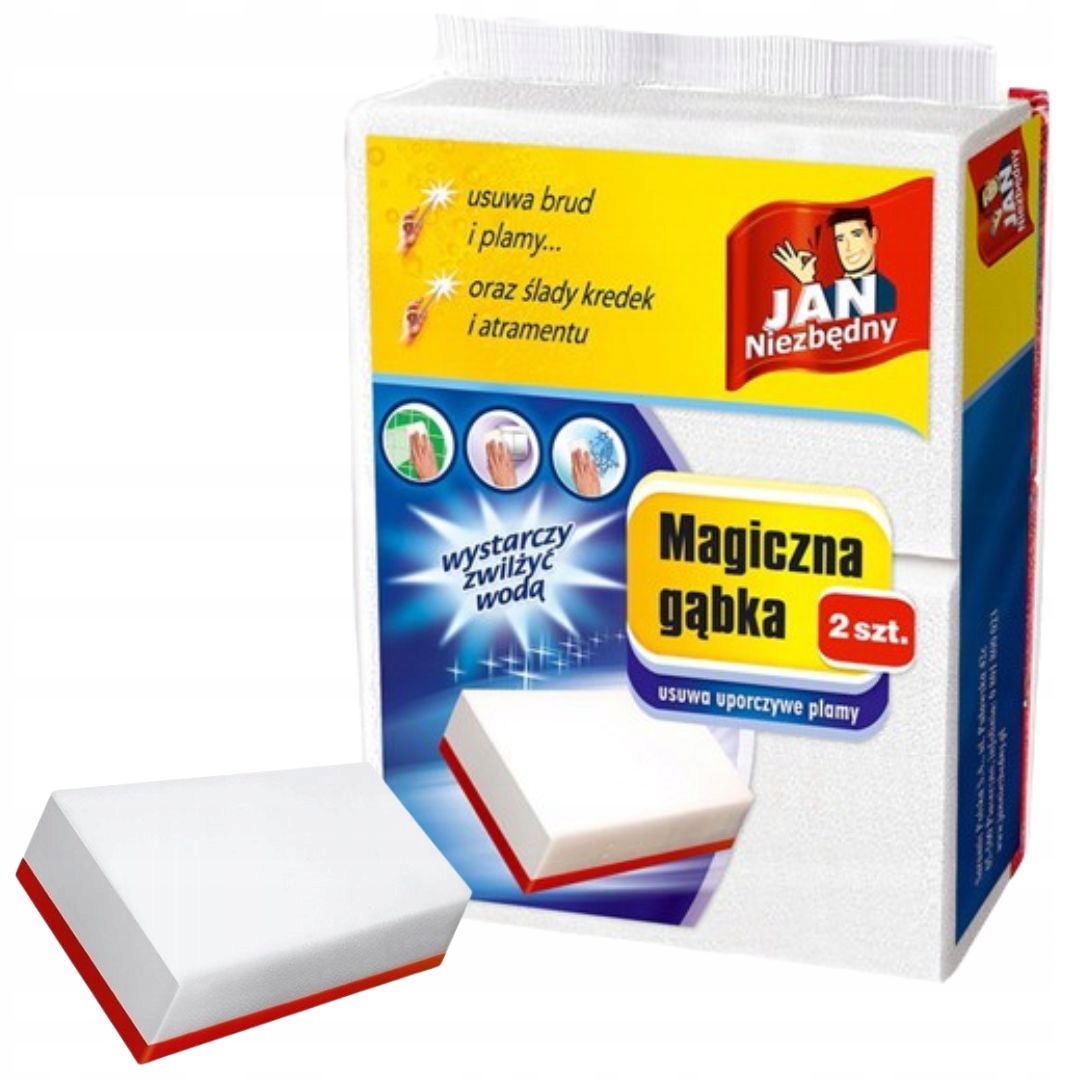 ? magiczna gąbka Jan Niezbędny, gąbka czyszcząca bez detergentów, gąbka na plamy i brud, czyszcząca gąbka do ścian, gąbka do usuwania zabrudzeń, skuteczna gąbka do sprzątania, ekologiczne sprzątanie, czyszczenie bez chemii