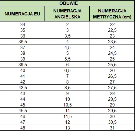 | Rozmiar obuwia |