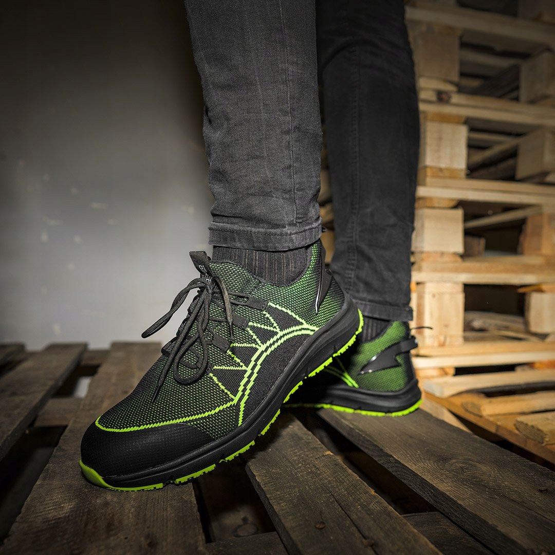 - Wyposażone w stalowy podnosek, cholewkę z dzianiny flyknit, dzianinową wyściółkę typu ,,siatka”, podeszwę z gumy EVA oraz wkładkę z pianki HI-POLY charakteryzującą się wyjątkową trwałością.