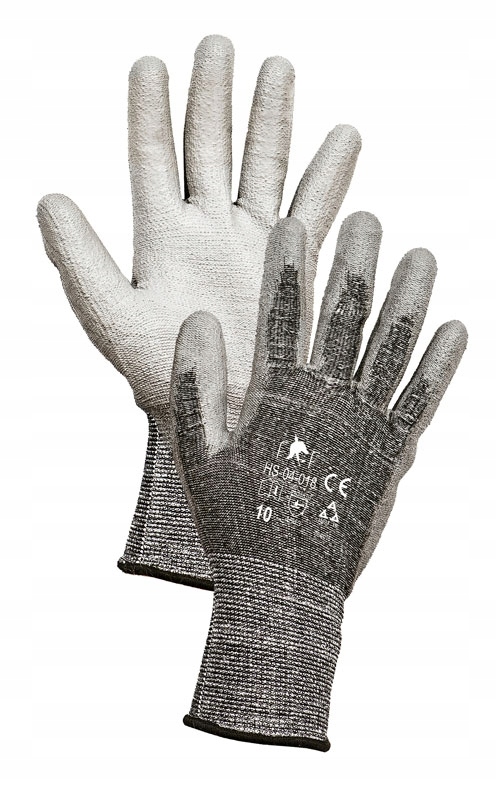 Wykonane z trwałej, bezszwowej dzianiny zawierającej włókna HPPE, włókno szklane, poliester, Spandex i poliamid. Dzięki temu rękawice są odporne na przecięcia (poziom C), elastyczne i wygodne. Powleczenie poliuretanem (PU) w części chwytnej poprawia przyczepność, umożliwiając pewne operowanie narzędziami i elementami roboczymi.
