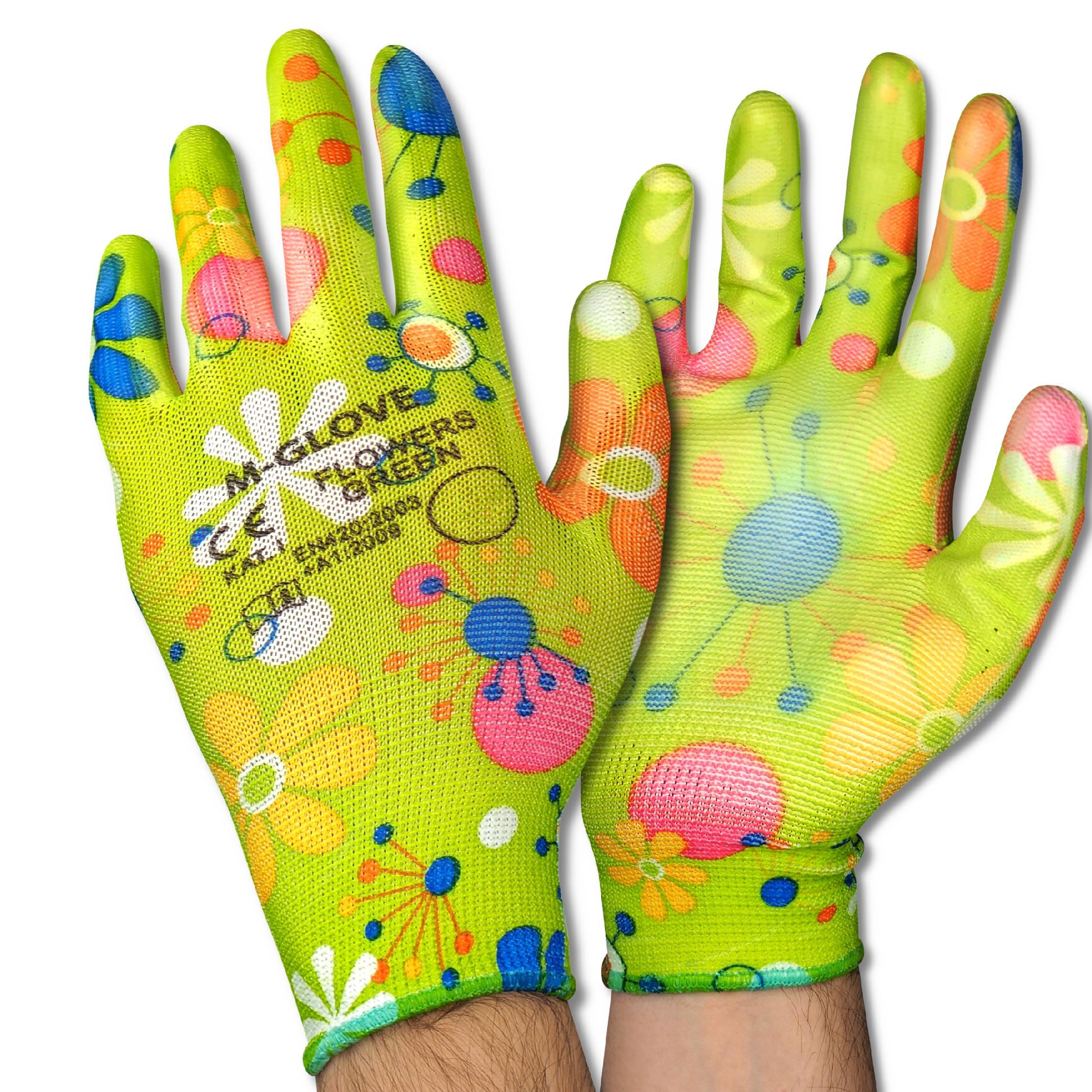 RĘKAWICE OCHRONNE LADY ELASTIC-POLI. KWIATY ZIELONE (7)