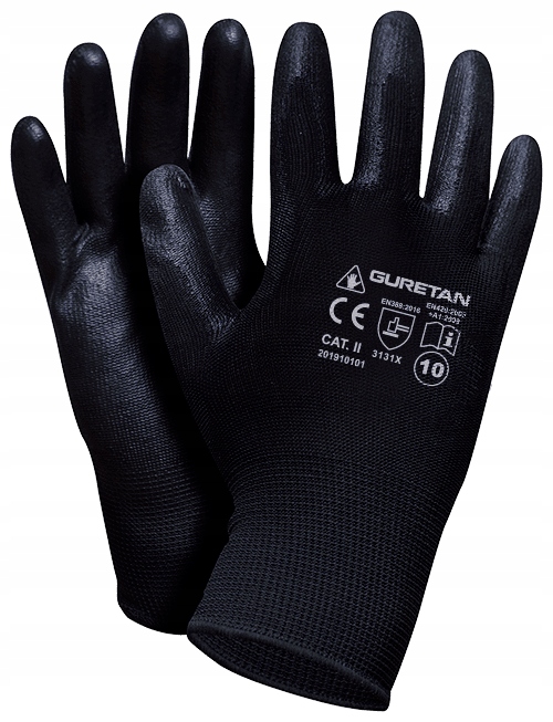 GURETAN SET B czarne rękawice robocze powlekane poliuretanem 10 / XL