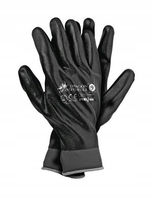 Rękawice ochronne wykonane z nylonu, powlekane na całej dłoni powłoką nitrylu z linii DRAGON