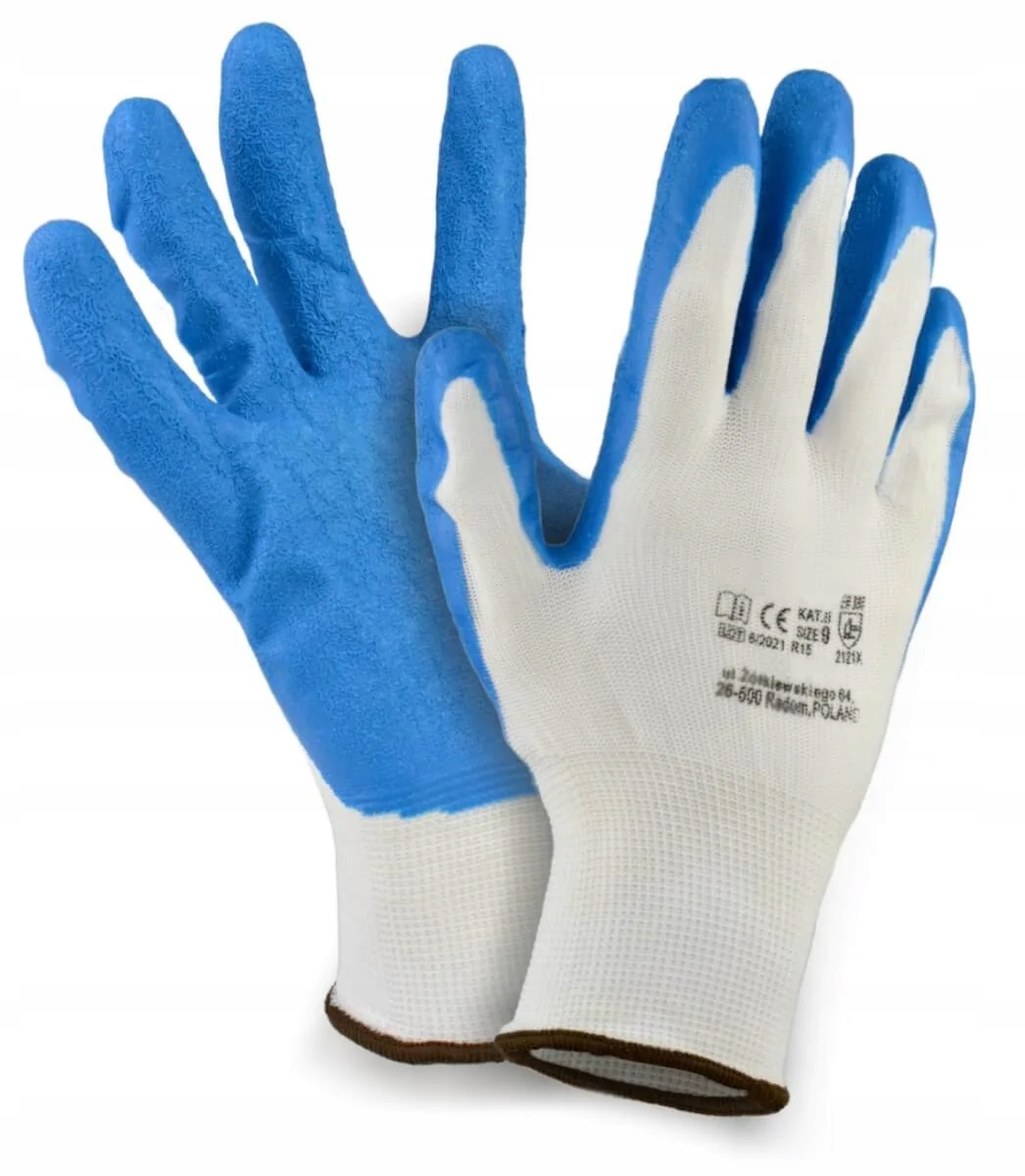 - Rękawice ochronne wykonane z poliestru, powlekane latexem.