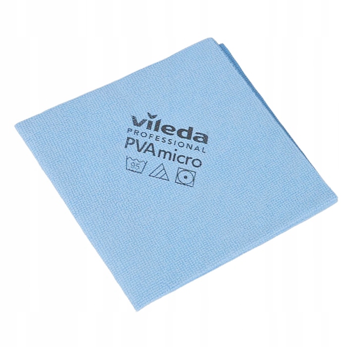 Ścierka VILEDA PVA Micro Professional mikrofibra niebieska. PVAmicro to innowacyjna tkanina wykonana z fabrycznie impregnowanej mikrofibry PVA. Zapewnia to ściereczce Vileda PVA gładką strukturę wewnętrzną, zapewniającą wysoką wydajność czyszczenia. PVA jest dobrze znane w profesjonalnych zastosowaniach, dzięki swojej chłonności i braku powstawania smug na czyszczonych powierzchniach.