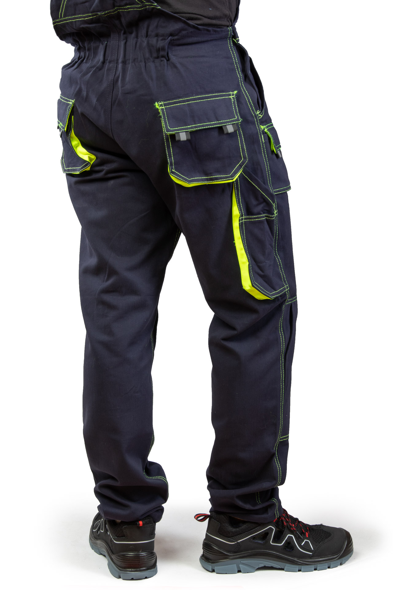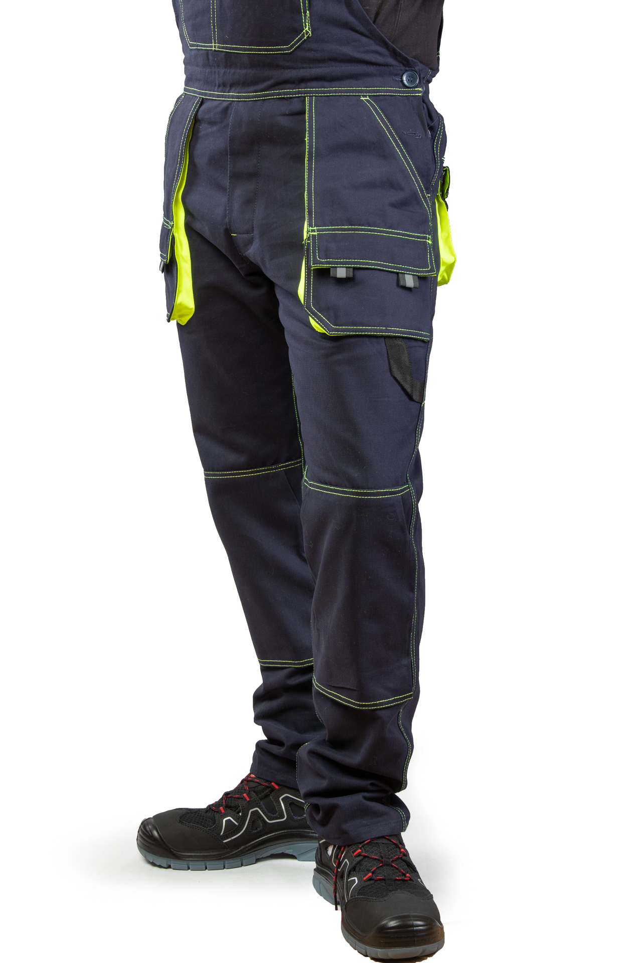 - Kieszenie: przestrzenne kieszenie, dwie kieszenie boczne, wzmocnione kieszenie zapinane na rzepy, kieszeń na komórkę, dwie kieszonki na długopisy, kieszeń na dokumenty, kieszeń na miarkę „metrówkę”, szlufka na młotek, ergonomiczna kieszeń na nakolanniki,