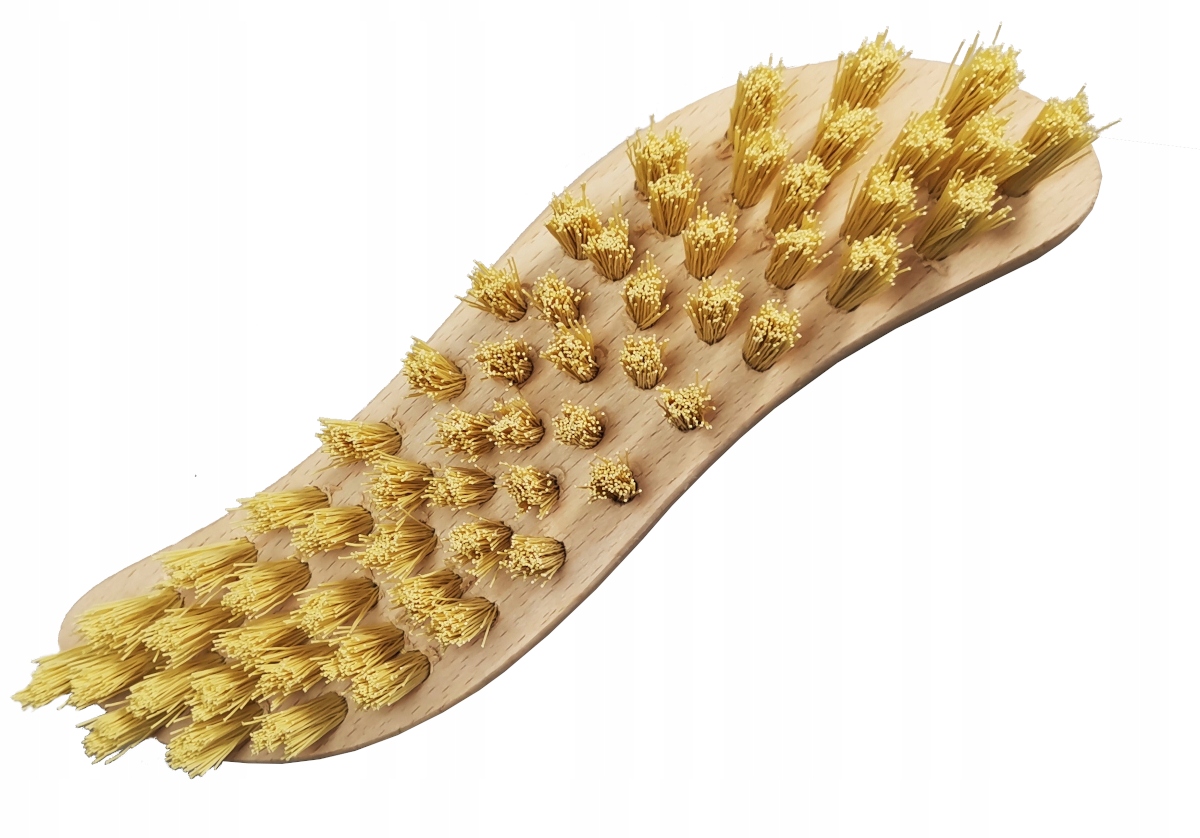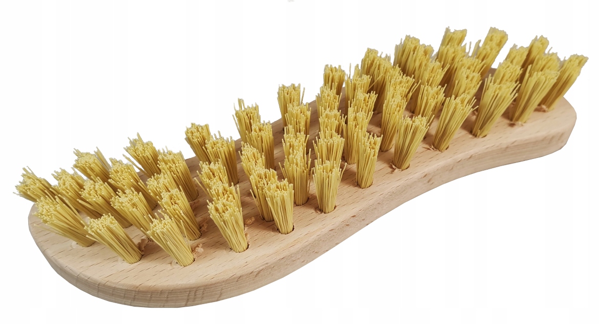 Drewniana, RĘCZNA szczotka z usztywnionym włosiem.