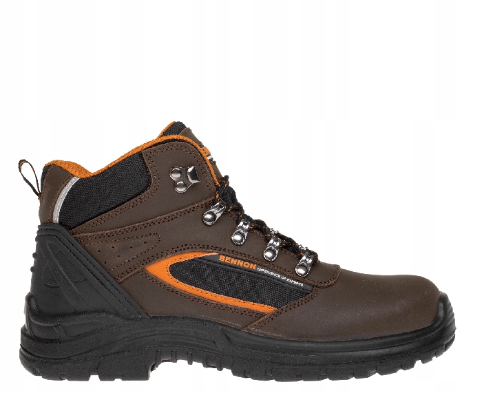 - Wierzch: crazy horse – brazowy, grubość materiału 1,8 – 2,0 mm + czarny textil OXFORD, pomarańczowe elementy dekoracyjne, boczne wzmocnienia wykonane z TPU dla zwiększenia stabilności