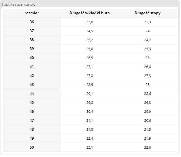 | Rozmiar obuwia |