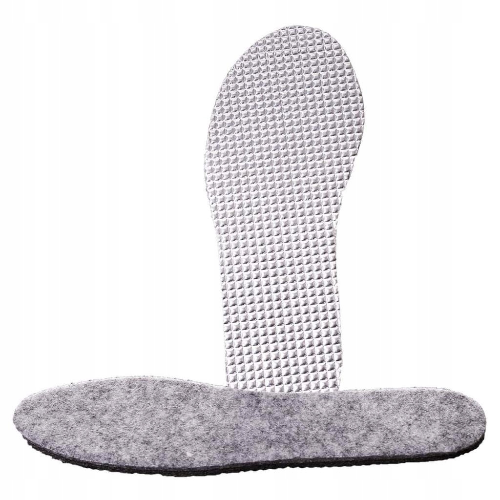 - Trzecia warstwa wkładek do butów wykonana jest z folii aluminiowej, która doskonale przeciwdziała przemoczeniu oraz dzięki swoim właściwościom termoizolacyjnym zapobiega odprowadzaniu ciepła na zewnątrz