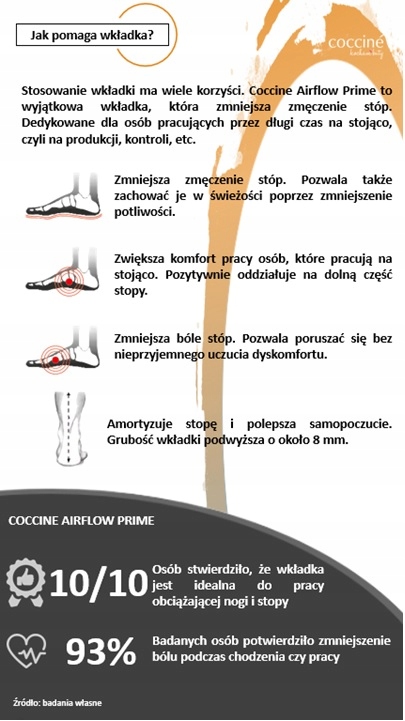 - Zmniejsza zmęczenie stopy