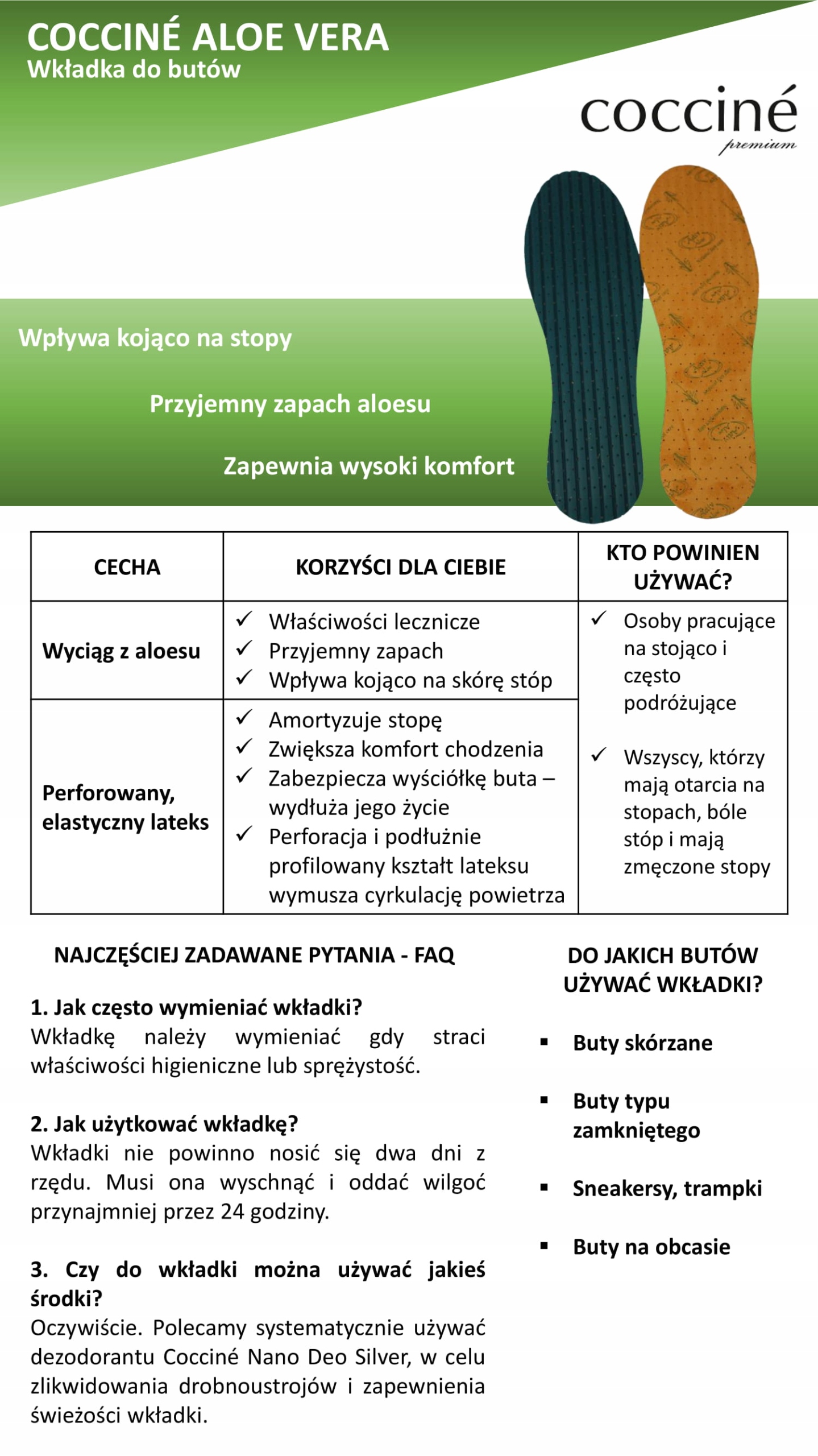 - Wkładka z wyciągiem z aloesu (właściwości lecznicze, kojące