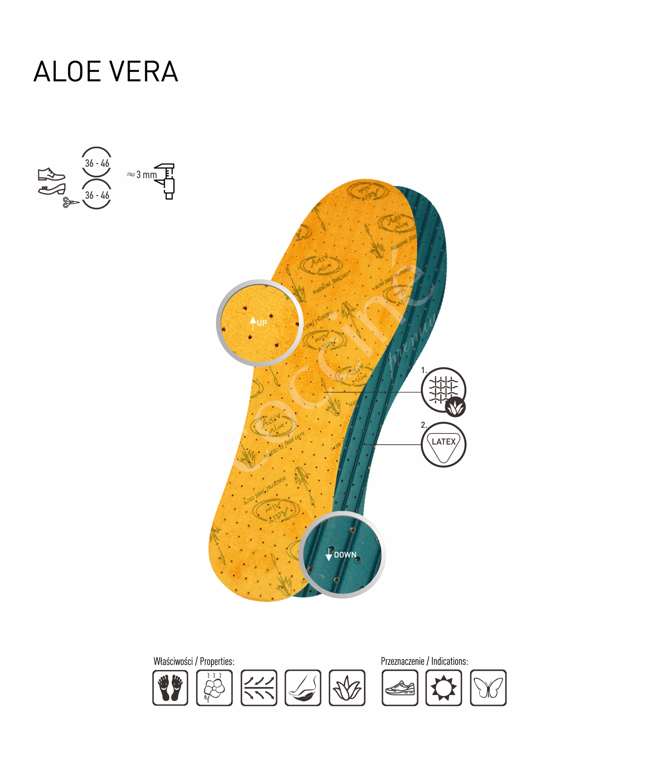 WKŁADKA ALOE VERA – Wkładka o świeżym zapachu zawierająca wyciąg z aloesu. Zapewnia wyjątkowy komfort dzięki elastycznemu lateksowi oraz miękkiej, miłej w dotyku powłoce tekstylnej.