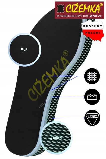- Luksusowe, ultra lekkie wkładki, wykonane z wysoko elastycznej pianki która idealnie dopasowuje się do kształtu stopy.