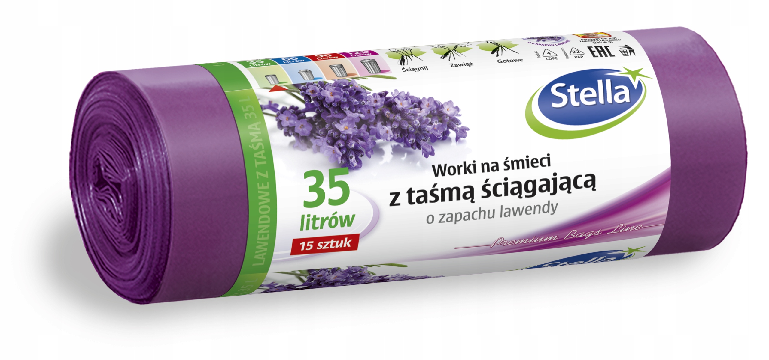 Worki na śmieci STELLA 35/15 z taśmą LAWENDA